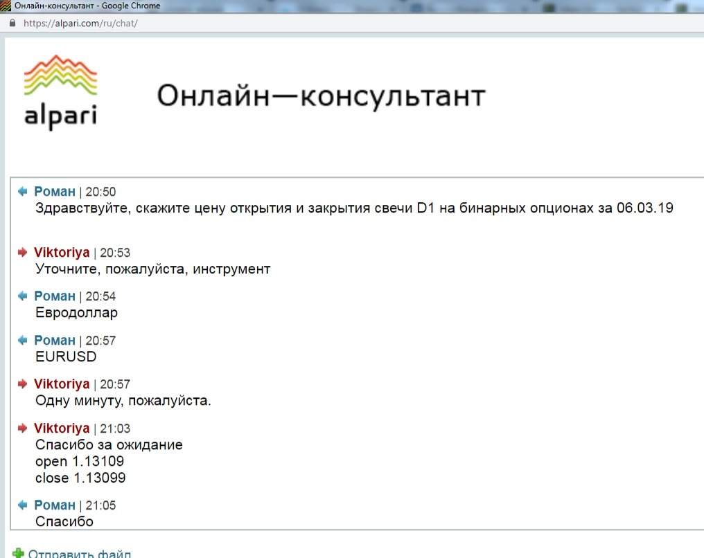 Я больше скажу, открываем вчерашний график D1 и смотрим 06.03.2019 на Алпари МТ4 и Бинари, разница у Бинари цена выше закрылась на 74 пункта :oops: