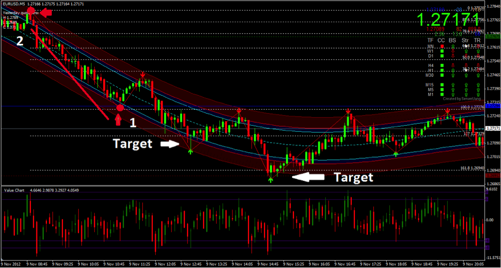 This strategy will produce around 100 setups per currency pair per day, so use it wisely, and be very sure to learn it by heart before you jump in full steam.