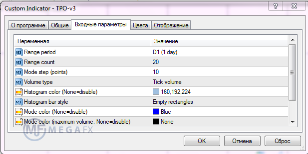 Индикатор VP делит график на равные по времени диапазоны и для каждого показывает распределение. Диапазоны могут быть равными только стандартным значениям таймфреймов не ниже текущего. Например, для H1 диапазон может быть указан как H1, H4, D1, W1, MN1. В MT5 доступны промежуточные таймфреймы.