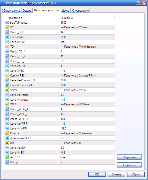 Пучок WPR, RSI и CCI в данной версии отключены..