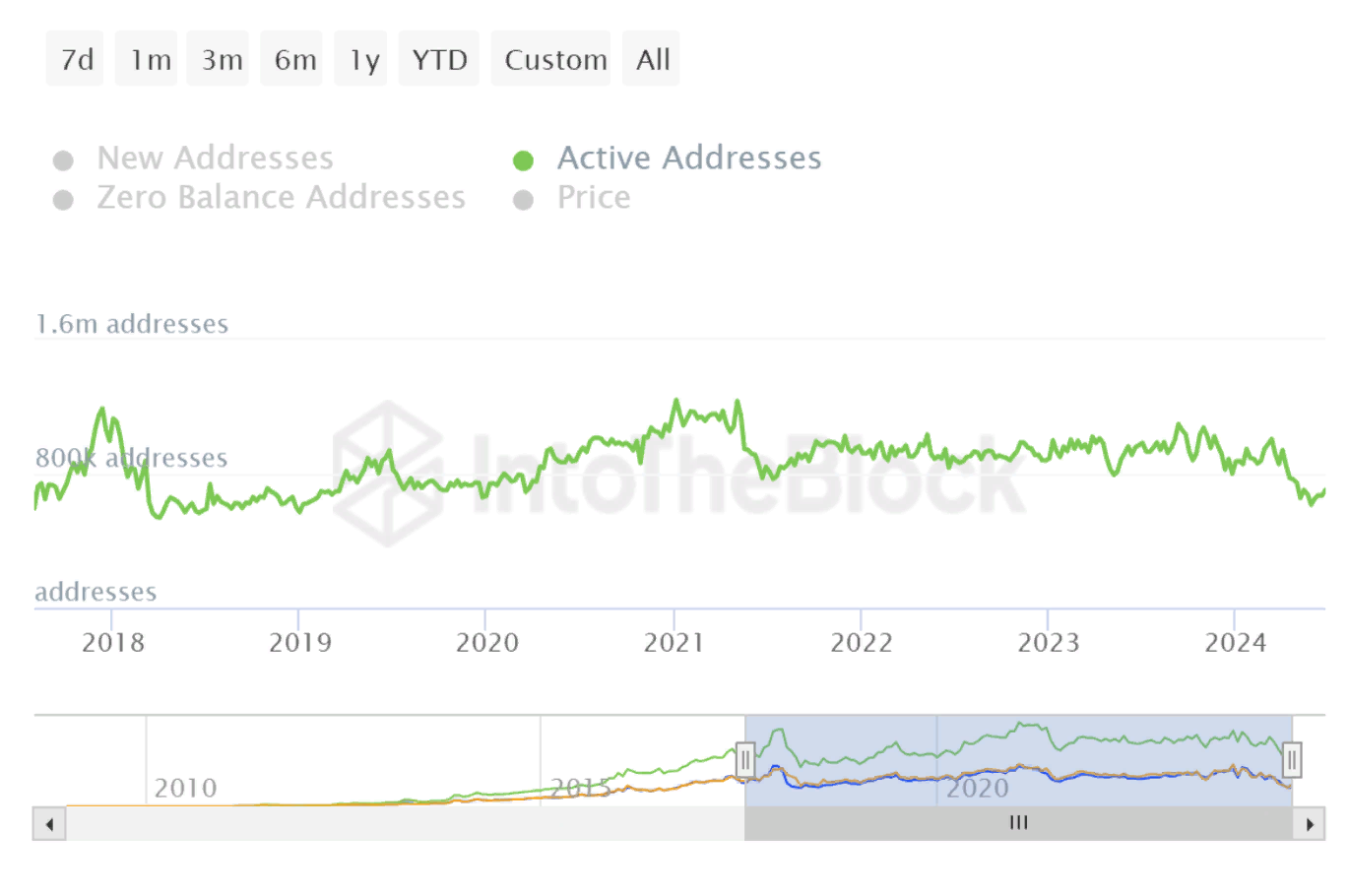 В июне после небольшого всплеска в начале месяца адресная активность вновь пошла на спад. Сокращение числа инвесторов, покупающих и продающих криптовалюту, говорит о вступлении рынка в фазу консолидации, подчеркнули в IntoTheBlock.