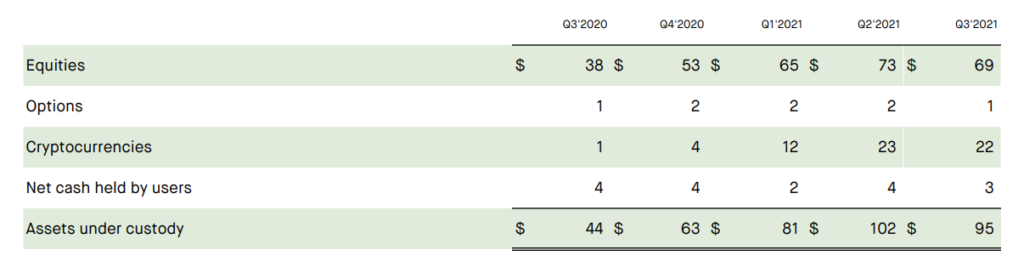 Количество зафондированных счетов сократилось с 22,5 млн до 22,4 млн, в то время как аналитики в среднем рассчитывали на рост до 24 млн. Число активных трейдеров в разрезе месяца упало с 21,3 млн до 18,9 млн, объем активов — со $102 млрд до $95 млрд.