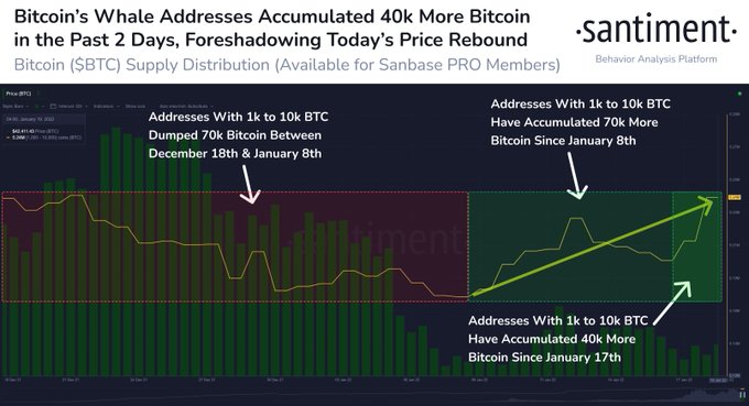 Аналитики также выяснили, что в период с 18 декабря по 8 января адреса, удерживающие от 1000 до 10 000 биткоинов, продали в общей сложности 70 000 монет.