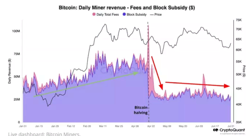 Если в марте, в среднем, за сутки майнеры получали около $79 млн, то теперь эта сумма составляет всего $29 млн. Кроме этого, эксперты зафиксировали снижение доходов пулов от обработки транзакций.