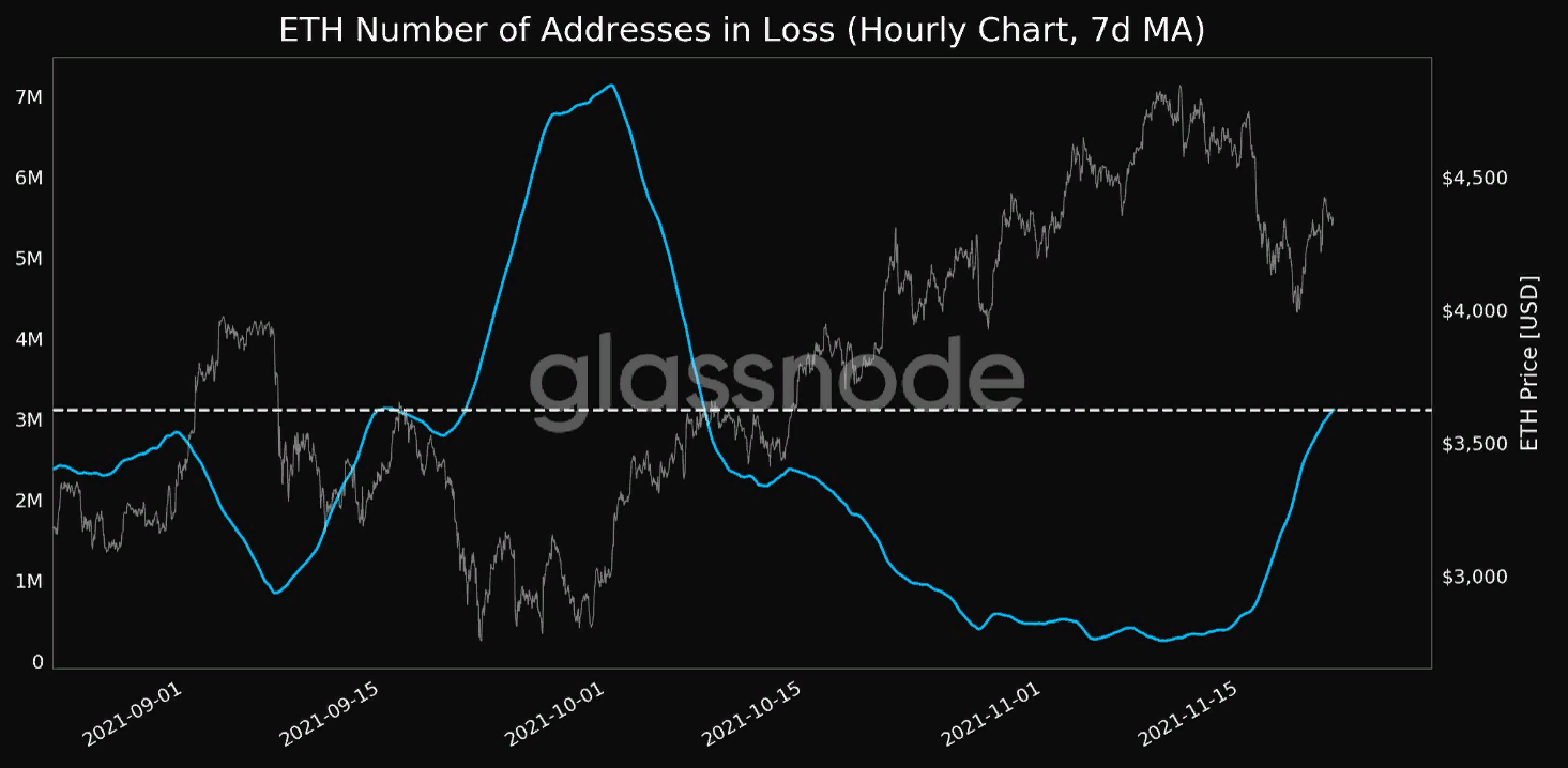 Аналитики Glassnode обратили внимание на рост числа убыточных эфириум-адресов