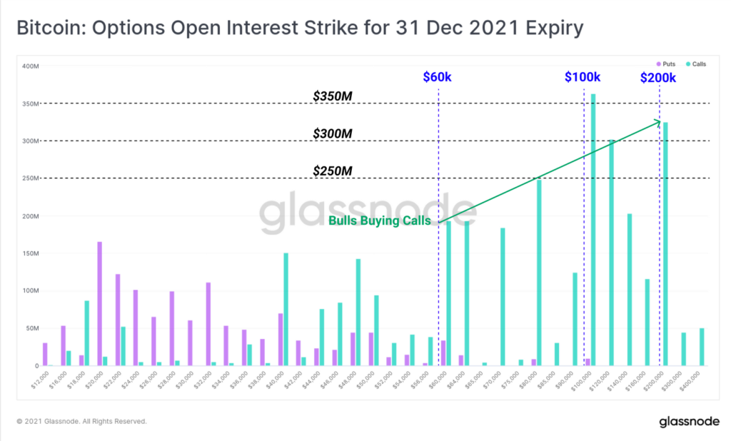 Отражением бычьих настроений также стало преобладание спроса на опционы колл и интерес к страйкам в $100 000 и $200 000 в контрактах с экспирацией в конце года.