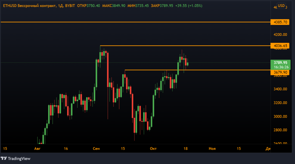 На прошлой неделе цена ETHUSD приблизилась к локальному максимуму — отметке $4030.