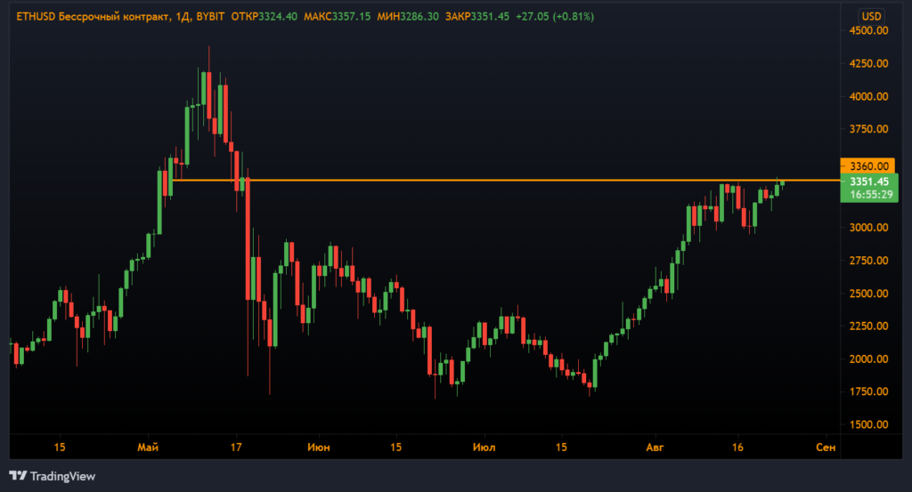При закреплении над уровнем $3360 актив получит поддержку для продолжения роста выше предыдущего исторического максимума.