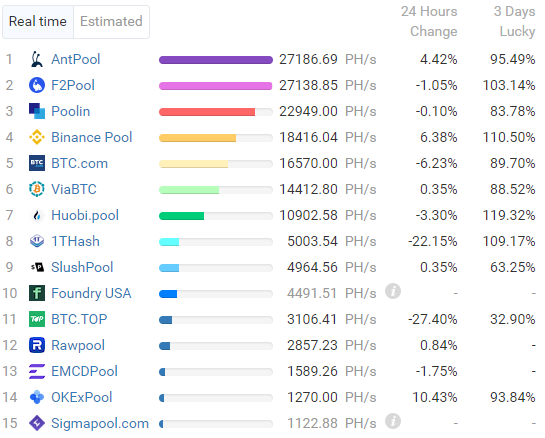 Согласно BTC.com, на момент написания AntPool лидирует в рейтинге хешрейта на 24-часовом временном отрезке. На более широком таймфрейме первое место по-прежнему занимает конкурент F2Pool.