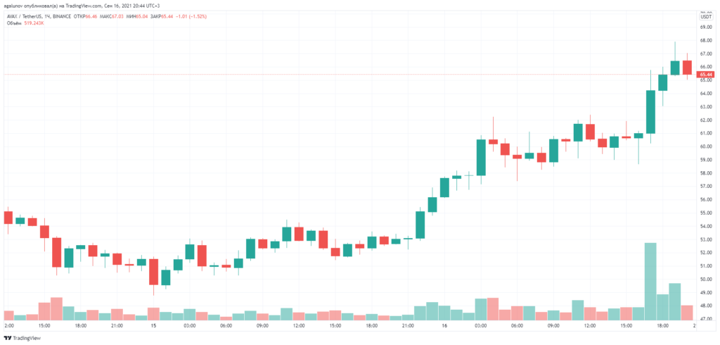 На фоне информации о закрытии частной продажи цена токена AVAX выросла почти на 24%, согласно CoinGecko. На момент написания актив торгуется вблизи $65.
