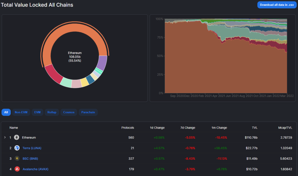 Согласно DeFi Llama, Avalanche занимает четвертое место по объему заблокированных средств (TVL) в смарт-контрактах c показателем $10,72 млрд. Крупнейшим по TVL проектом экосистемы является лендинговый протокол Aave ($3,07 млрд).