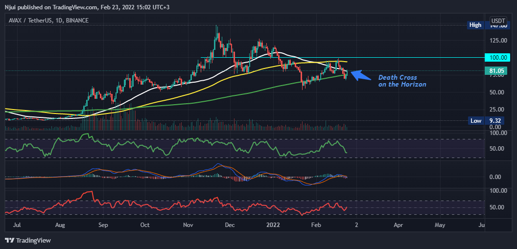 AVAX 22 ноября прошлого года достигал $134,2 – это исторический максимум для криптовалюты. Однако уже в январе монета рухнула ниже $60, после чего началась фаза ее длительной консолидации.