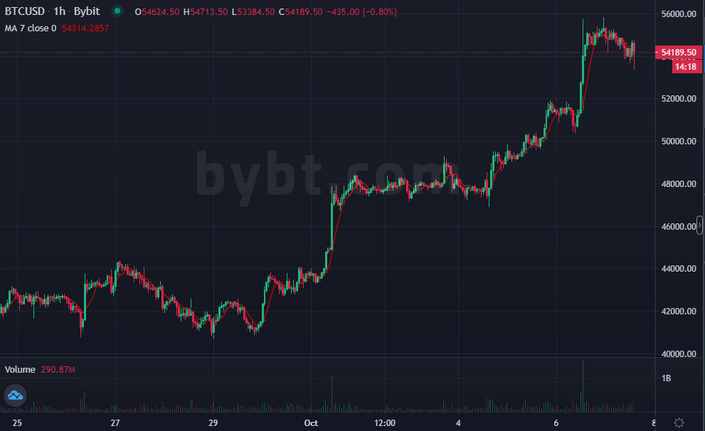 Напомним, в середине весны биткоин достигал $65 000. В начале американской сессии BTC торгуется на уровне $54 100. За неделю его капитализация выросла почти на 25% до $1,02 трлн.