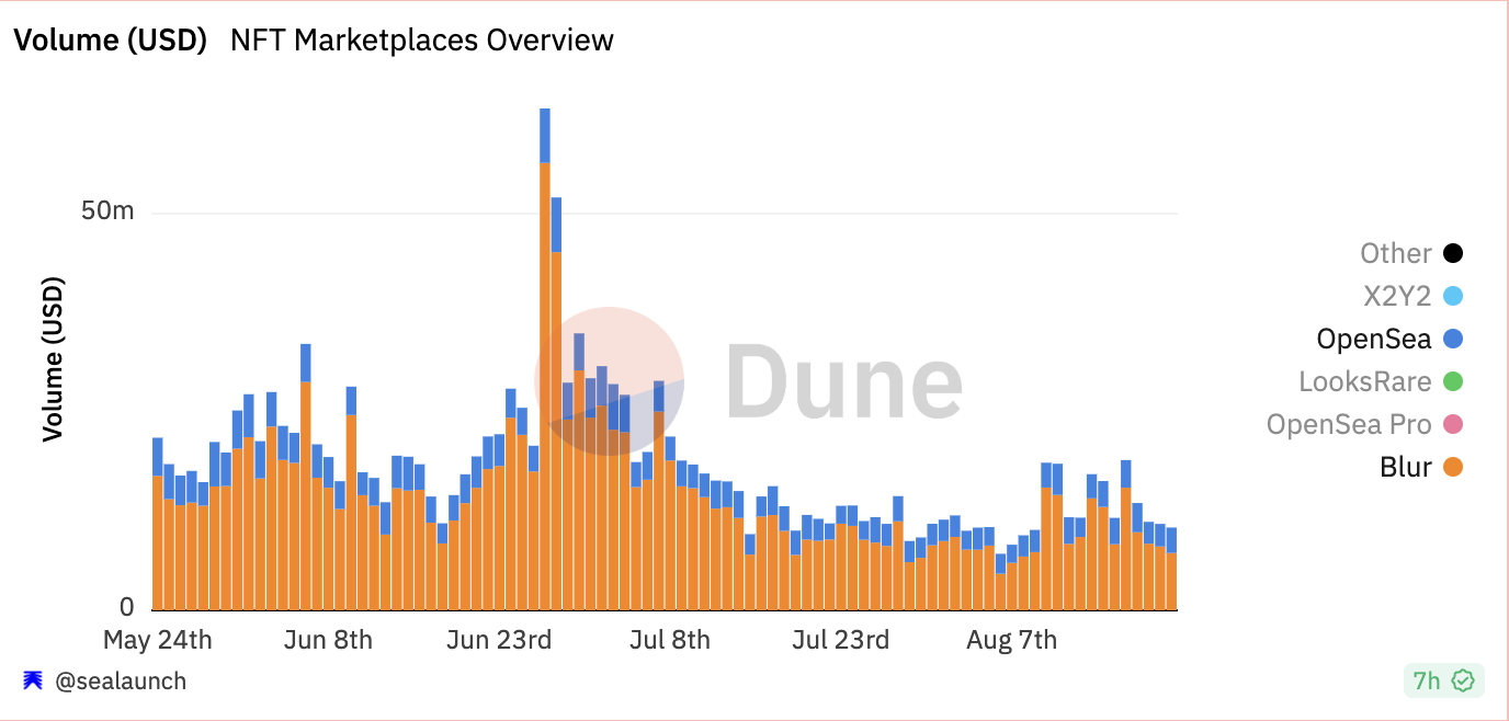 Платформа Blur заняла первое место на рынке NFT по объему торгов.