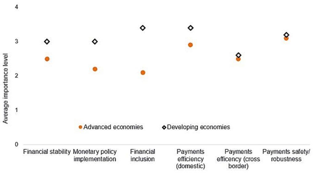 В целом, как видно из представленной ниже схемы, актуальность появления цифровой валюты в качестве нового альтернативного и более эффективного инструмента монетарной политики и способа вовлечь население в безналичный денежный оборот существенно выше в развивающихся странах. Возможно, поэтому текущие лидеры финансового рынка в лице США, ЕС и Японии проявляют готовность отдать пальму первенства Китаю, чтобы изучить его опыт и избежать ошибок, предложив своим гражданам уже более совершенный «продукт».