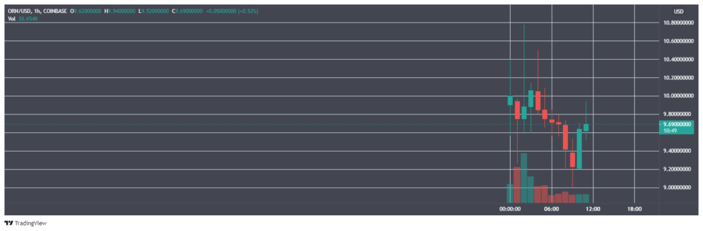 Монета проекта Orion Protocol, который нацелен на объединение ликвидности с централизованных и децентрализованных бирж на одной платформе, также подорожала с открытия. Цена ORN с $9,9 в моменте поднялась до $10,48. После коррекции токен торгуется на уровне около $9,7.