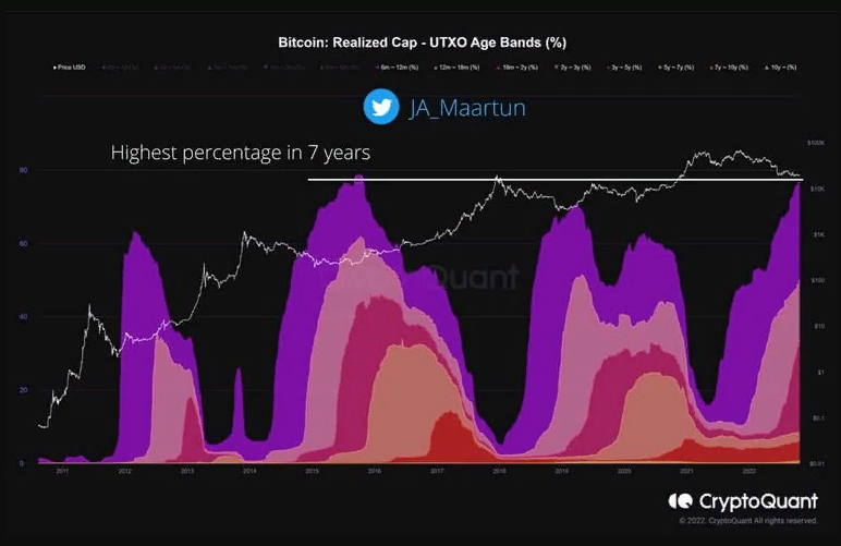 Команда CryptoQuant выяснила, что под контролем ходлеров сейчас находится самый высокий объем криптовалюты с октября 2015 года.