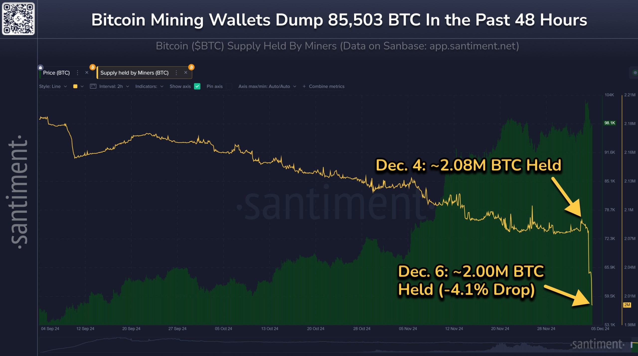 За минувшие выходные майнеры распродали 85 503 биткоина — это рекордный объем продаж с февраля этого года