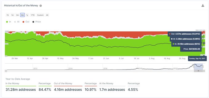 Аналитики отмечает, что примерно 4,4 млн адресов покупали биткоин, когда тот торговался в диапазоне от $47 600 до$ 43 450. Причем к концу текущей недели доля прибыльных кошельков окажется гораздо ниже сегодняшнего показателя, так как вряд ли в ближайшие дни BTC сможет возобновить наступление, прогнозируют эксперты.