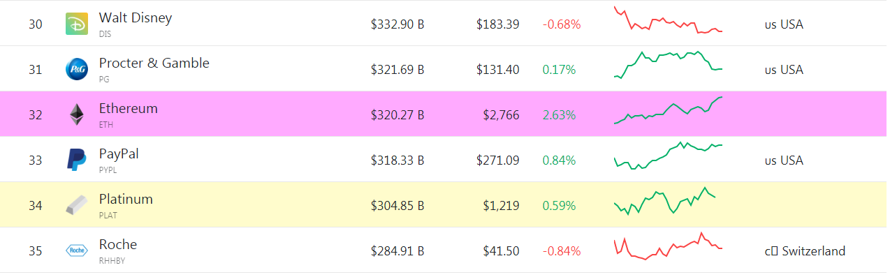 Отметим, что в рейтинге CompaniesMarketCap ETH уже обошел и компанию PayPal, капитализация которой сейчас составляет $318,33 млрд.
