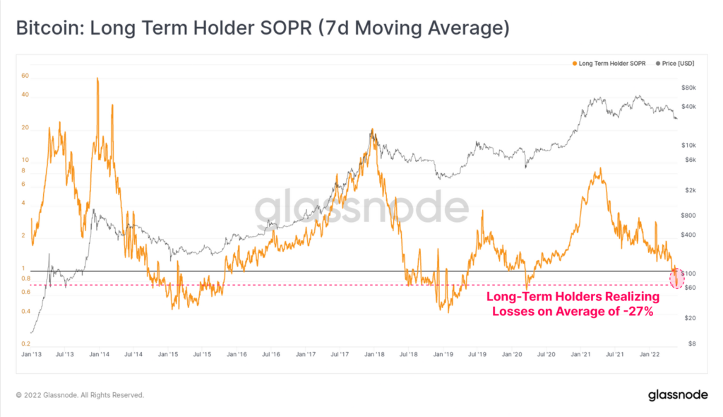 На прошлой неделе LTH-SOPR указал на средний убыток в 27%.