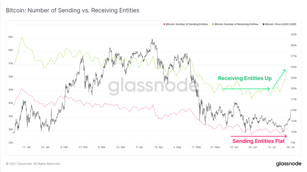 При анализе поведения биткоин-адресов специалисты обнаружили рост числа тех, которые получают монеты, в то время как количество тех, что тратят, осталось относительно стабильным. Они также предложили понаблюдать за устойчивостью этой тенденции.