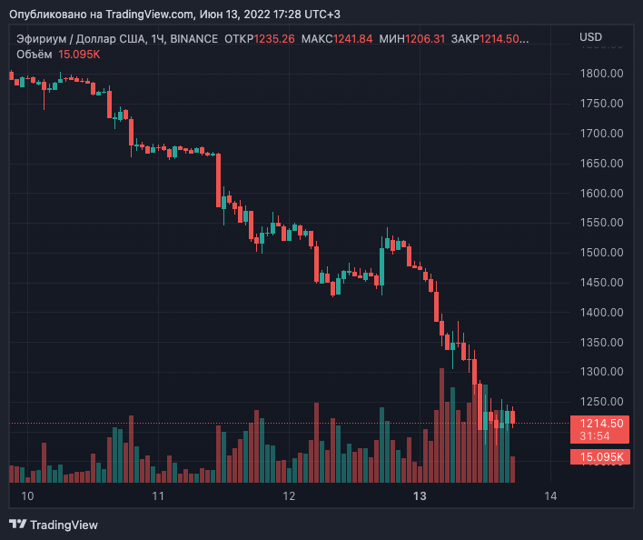 Новость вышла на фоне существенного падения криптовалютного рынка. За последние сутки Ethereum подешевел на 15,3% (CoinGecko), текущая цена — $1214.