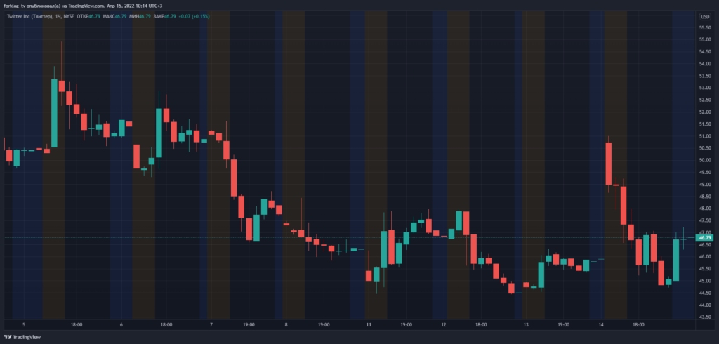Акции Twitter закрыли сессию 14 апреля на уровне $45,08. На премаркете стоимость ценных бумаг выросла — на момент написания они торгуются вблизи $46,79.