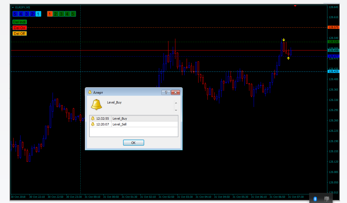 Ищу индикатор который бы показывал стрелки при побитии выставленного уровня