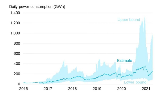 Сеть биткоина потребляет 67 ТВт электроэнергии, что выше пикового значения 2020 года. Об этом пишет Bloomberg со ссылкой на Bitcoin Electricity Consumption Index Кембриджского университета.