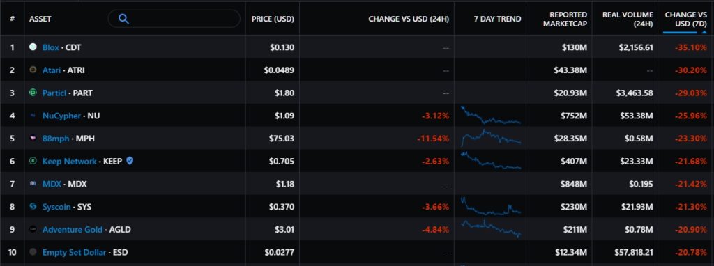 Больше всего подешевел токен стейкингового сервиса Ethereum 2.0 Blox. Цена CDT упала на 35%, капитализация составила $130 млн.