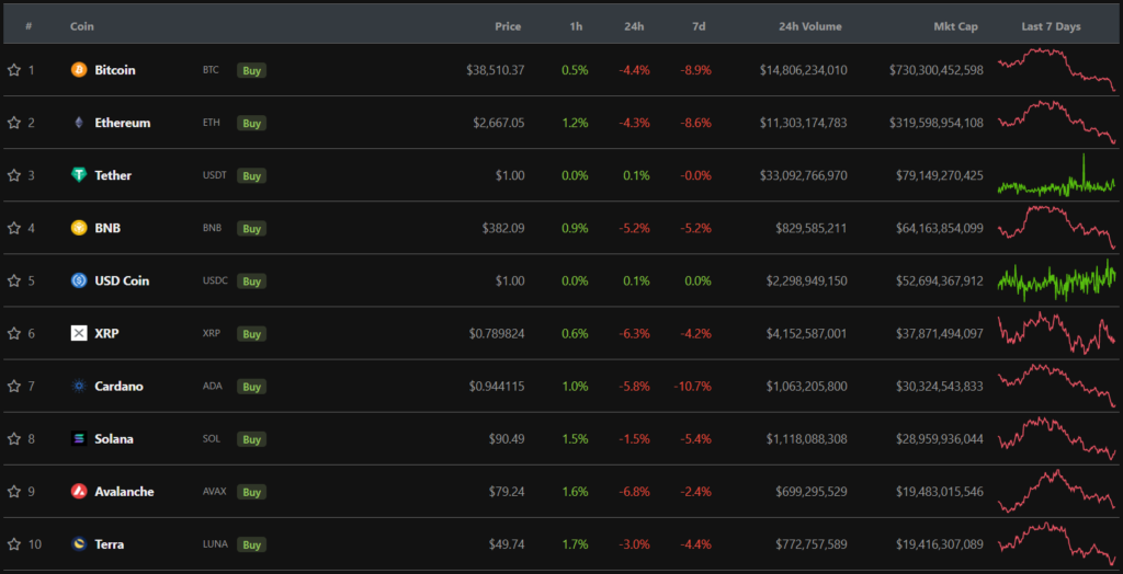 Традиционно флагман потянул за собой остальной рынок. Все цифровые активы из топ-10 по рыночной капитализации закрыли неделю в красной зоне.