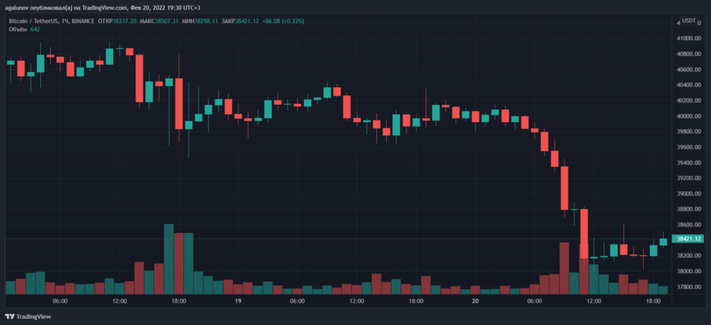В пятницу, 18 февраля, котировки первой криптовалюты опустились ниже отметки $40 000. Старший аналитик брокерской компании OANDA Эдвард Мойя назвал в качестве причин падения «краткосрочные геополитические риски и потенциальное чрезмерно агрессивное ужесточение денежно-кредитной политики» со стороны ФРС.