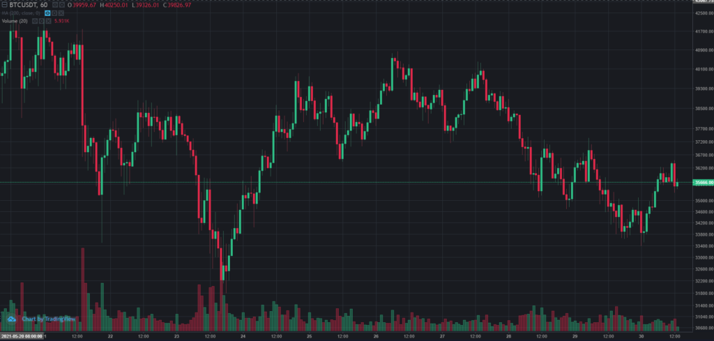 Часовой график BTC/USDT биржи Binance от TradingView.