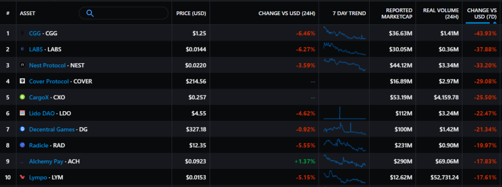 Больше всего подешевела внитриигровая валюта NFT-проекта Chain Guardians. Ее цена снизилась почти на 44%, а капитализация упала до $36,63 млн.