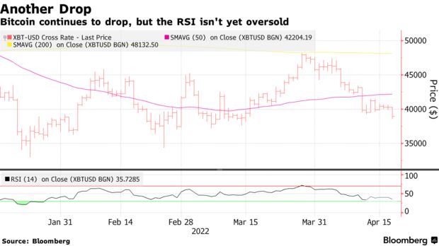 Как уточняет Bloomberg, за последние 24 часа капитализация крипторынка сократилась еще на 4% до $1,801 трлн. BTC упал до месячного минимума. На некоторых торговых площадках в понедельник, 15 апреля, крупнейшая цифровая валюта отступила до $38 580.