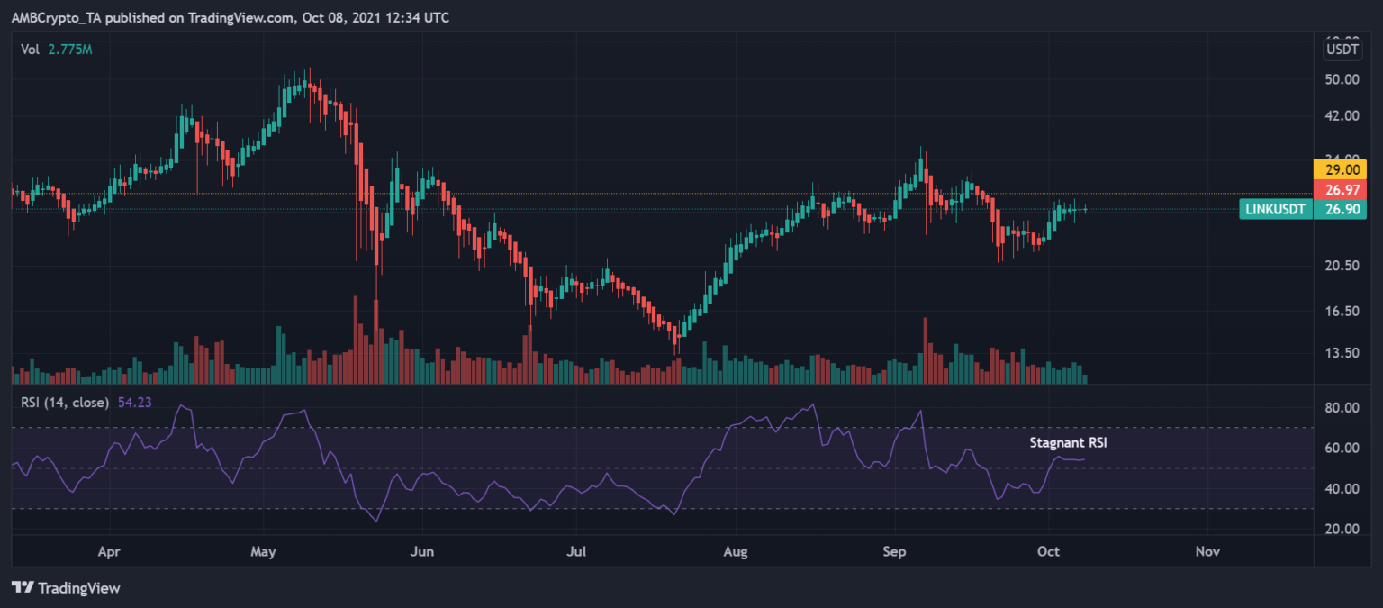 16 октября LINK вплотную приближался к $29, однако в этот же день он вновь перешел к снижению.