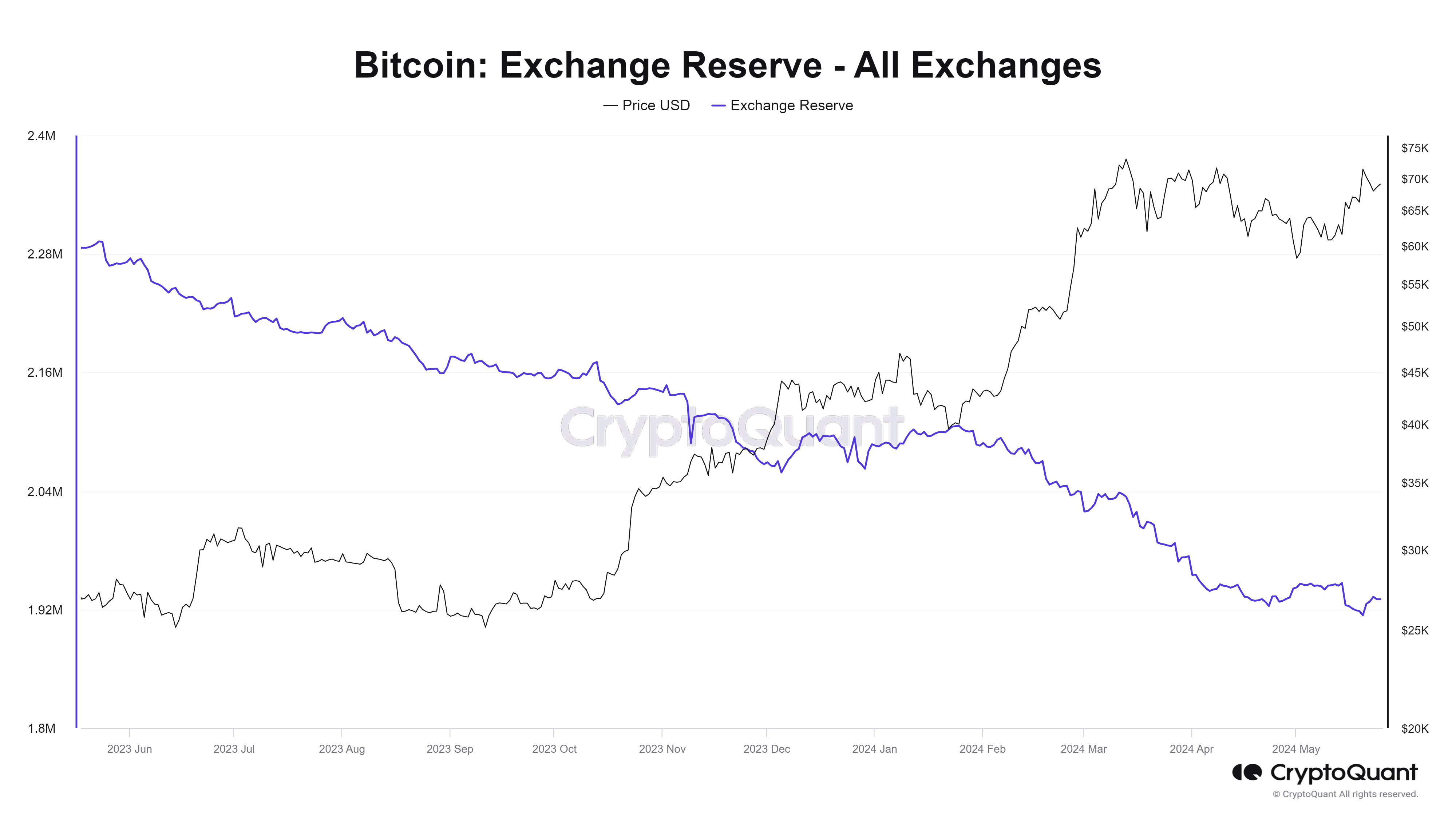 Снижение объема BTC, которое наблюдается с 23 мая, стабилизировало обстановку на рынке, на это указывает данные платформы CryptoQuant.
