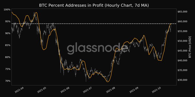 Параллельно увеличивается доля прибыльных адресов, сейчас она превышает 94%.