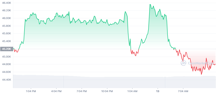 Обстановка немного стабилизировалась в середине недели, однако затем коррекция возобновилась. В понедельник, 13 сентября, курс BTC упал до $44 750. (-1,35%). Эфир (ETH) и Binance Coin (BNB) подешевели до $3275 и $399 соответственно.
