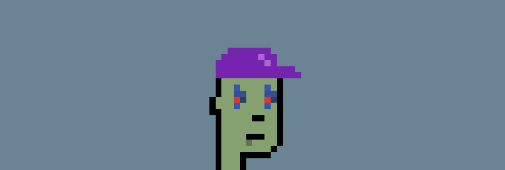 Токен представляет собой пиксельное изображение зомби-панка в фиолетовой кепке с красно-синими глазами.
