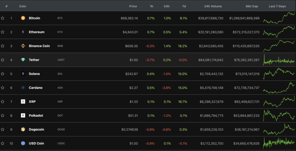 Капитализация рынка криптовалют превысила $3,1 трлн. Так выглядит первая десятка наиболее капитализированных цифровых активов: