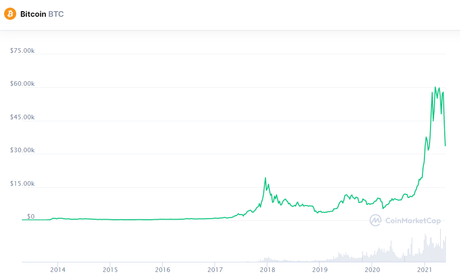 В ночь на понедельник, 24 мая, цена криптовалюты упала до $32 500. Капитализация BTC сократилась до $635,97 млрд. Потери также несут сейчас практически все альткоины.