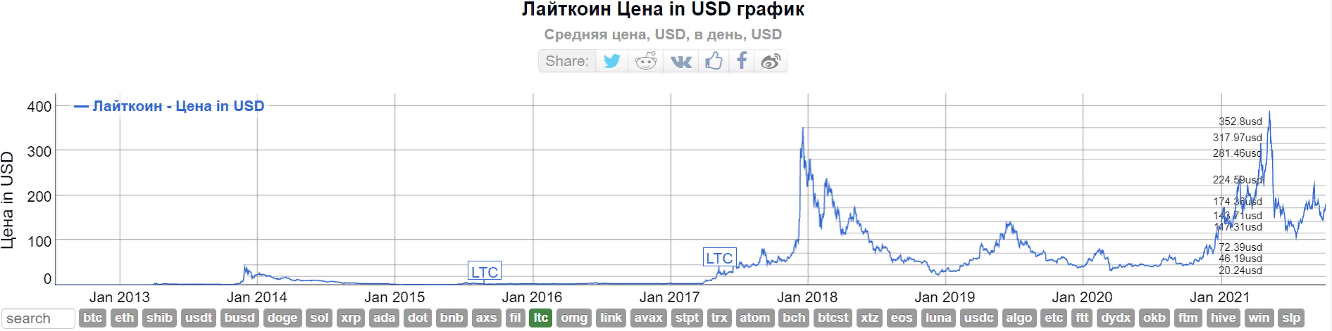 При этом стоимость альткоина, напротив, уверенно растет на протяжении последних нескольких дней. В понедельник лайткоин торговался на уровне $169, утром в четверг, 7 октября, цена поднялась до $182.