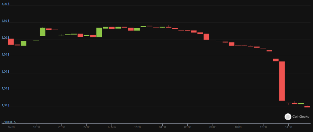 В течение двух часов после объявления Нелла цена нативного токена децентрализованной биржи обвалилась на 66%.