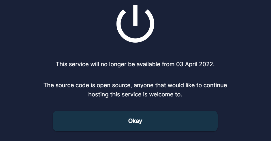 «Исходный код является открытым, любой желающий продолжить хостинг этого сервиса — добро пожаловать», — говорится в уведомлении.