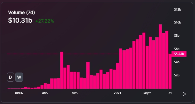Недельный объем торгов на Uniswap превысил $10 млрд