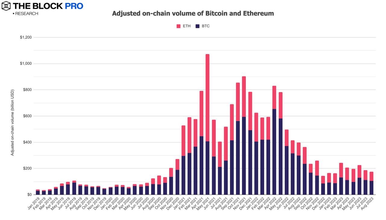 Аналитики Block Research зафиксировали падение торгов биткоином (BTC) и эфиром (ETH) в августе более чем на 6%.