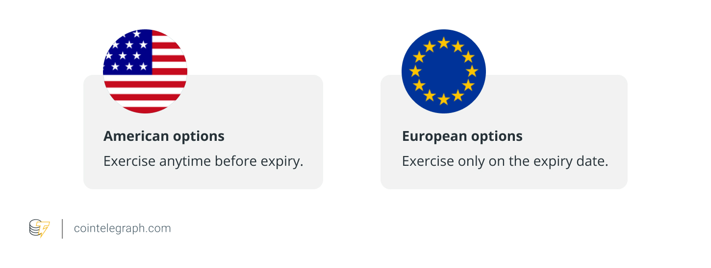 Эти два стиля различаются временем исполнения. Американский опцион можно исполнить в любой момент до истечения срока, а европейский — только в день окончания срока действия.