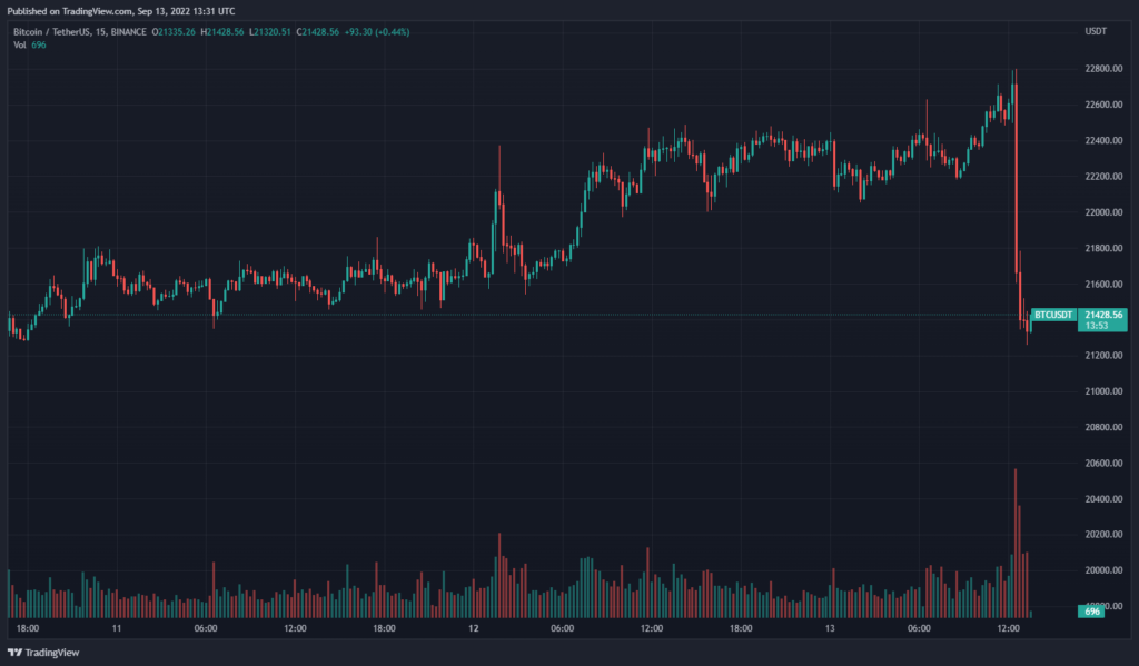 Данные: 15-минутный график BTC/USDT на Binance.